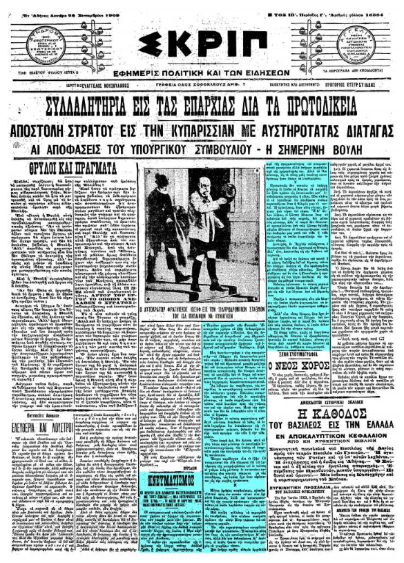 Η είδηση δημοσιεύθηκε στην εφημερίδα “ΣΚΡΙΠ”, στις 28/09/1909…