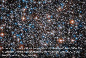 Εντυπωσιακή φωτογραφία του σφαιρωτού σμήνους Μ55. Μια εκπληκτική φωτογραφία του σφαιρωτού άστρου M55 που κατέγραψε το διαστημικό τηλεσκόπιο Hubble έδωσε στη δημοσιότητα