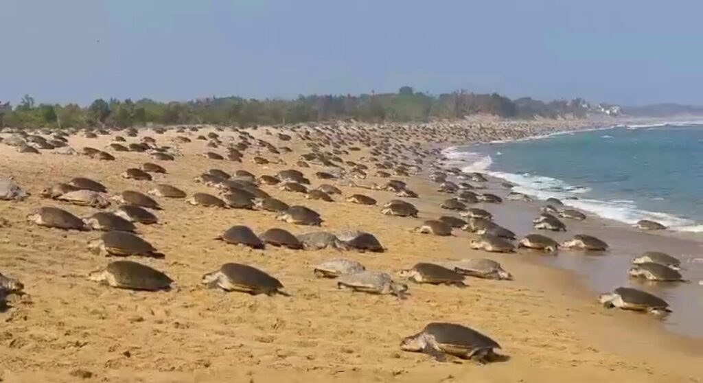 Μοναδικές εικόνες έρχονται από την παραλία Rushikulya στο ανατολικό κρατίδιο Odisha της Ινδίας, όπου περισσότερες από 700.000 χελώνες Olive Ridley βγήκαν στην ακτή για να γεννήσουν τα αυγά τους.