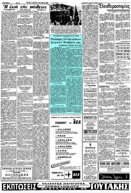 Η είδηση δημοσιεύθηκε στην εφημερίδα “ΕΛΕΥΘΕΡΙΑ”, στις 04/08/1956…